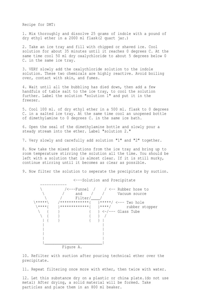 Qt's dmt extraction for students is archived by erowid as a historical document. These 3 ingredients worked for me… • a vegan diet • a tesla sleep cycle (6 hours awake, 3 hours asleep, repeat) • mild dehydration (not so much as a shaman in the desert). Dmt use guide and information. Start date may 20, 2019. Upload, livestream, and create your own videos, all in hd. My personal preference is to make dmt enhanced leaf. Browse through all your favorite run dmt recipes listed under the friday food fight tab. Do you think this recipe would really synthasize dmt or make a posion? For those who wish to drink the caapi and. This video should not be recreated, but if it hypothetically was, no aluminum should ever be used in this. And they aren't similar at all to any of the 2c series, as those are phenethylamines and not tryptamines like dmt. Several members here at the nexus have been asking me for sometime. Dimethyltryptamine or dmt is found in plants.